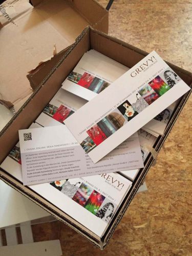 Von Grevy Ausstellung, Grevy With 0 KommentareDie Vorbereitungen für unsere erste Ausstellung laufen auf Hochtouren. Heute sind unsere Flyer angekommen.