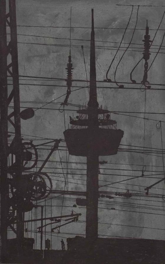 Fernsehturm Köln, Acrylfarben-Mischtechnik auf Nessel-Kastenleinwand, Motiv nach altem gefundenem Foto