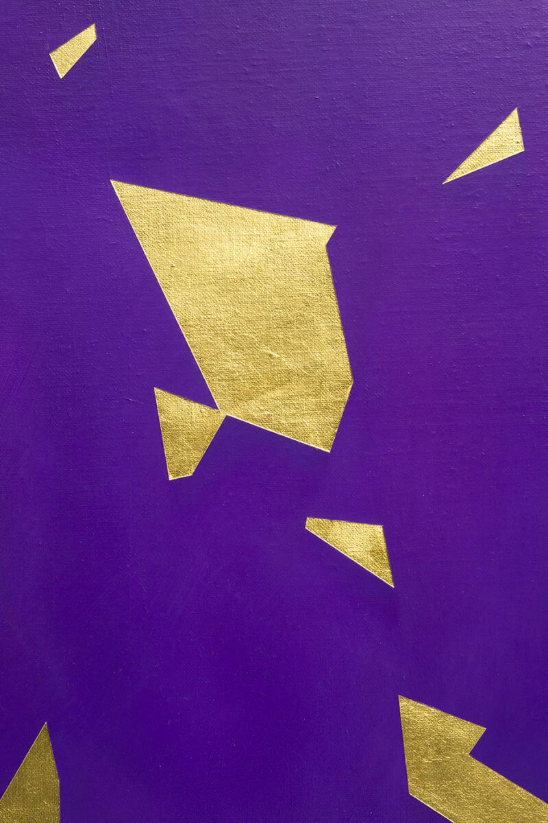 Hochwertige Materialien: 24 Karat Blattgold und Ölfarbe auf Leinen auf einem Holzrahmen.