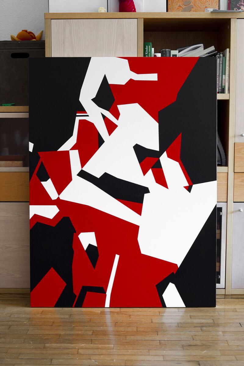 Hochwertige Materialien: Acrylfarbe der Marke „Golden“ auf Leinen auf einem Holzrahmen.