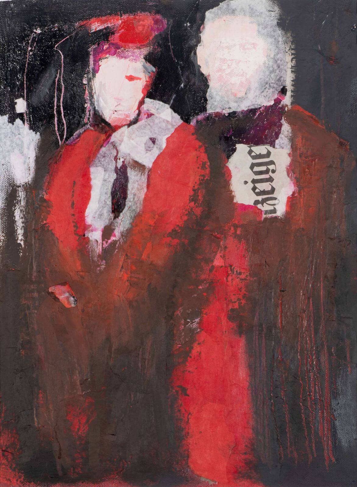 Wer hat das Sagen? Öl und Papier auf Leinwand