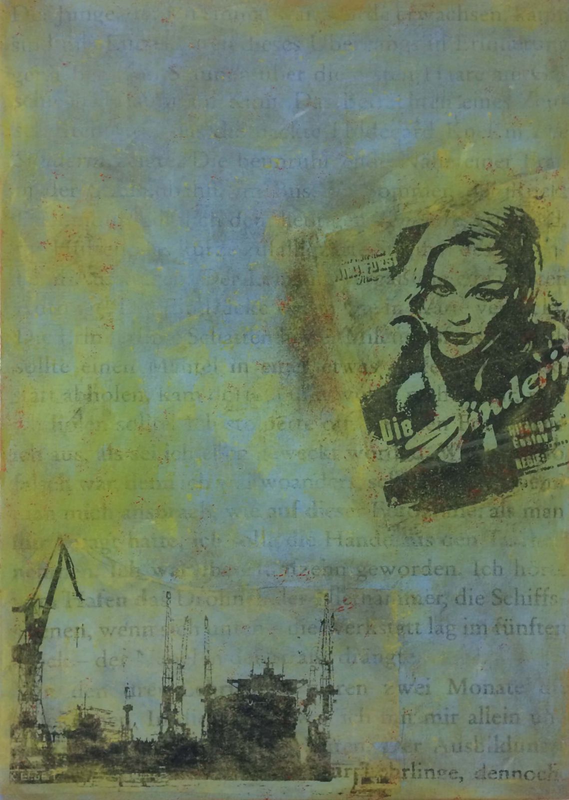 Dieses Bild ist Teil einer Auftragsarbeit für den Kölner Verlag Kieperheuer und Witsch. Mit den gleichen Textfragmenten, unterschiedlichen Bildern und verschiedenen Formaten habe ich 3 Bilder gestaltet. Der Verlag hat sich eines ausgesucht und gekauft. Dieses sollte im März 2020 Uwe Timm bei einer Feier zum 80. Geburtstag übergeben werden. Doch dann kam Corona! Mittlerweile ist Uwe Timm 81 Jahre alt und er hat sein Geburtstagsgeschenk vor einigen Wochen mit der Post erhalten!