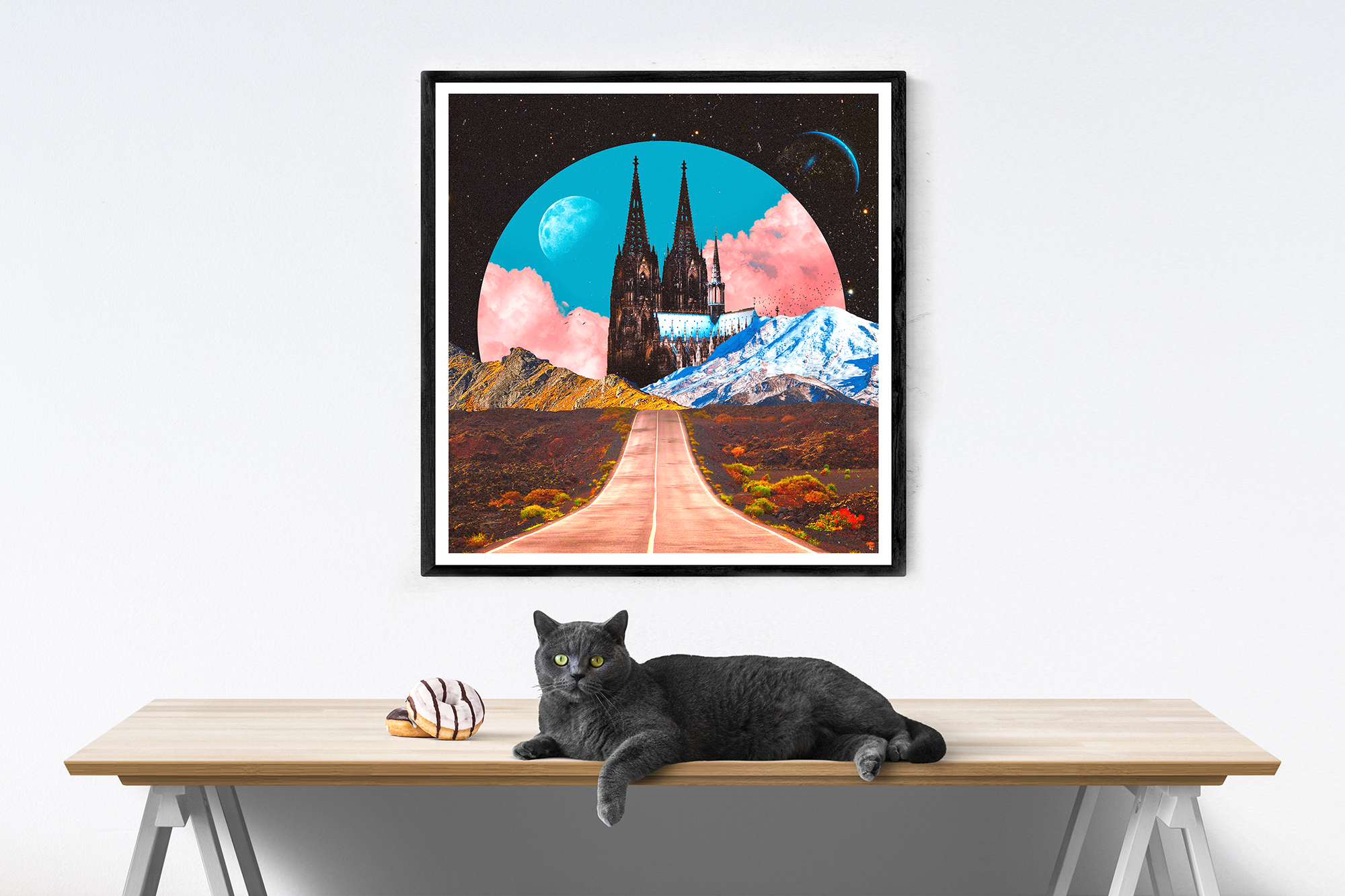 Digitale Collage, gedruckt auf Leinwand und Holzstruktur. Limitierte Druckserie.