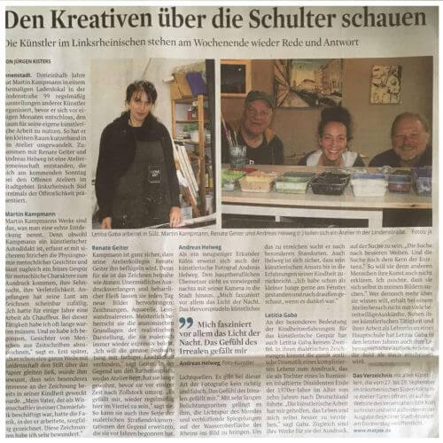 07 Sep Drei Wochenenden für Atelierbesuche Von Grevy With 0 Kommentare Offenes Ateliers 2021Am Wochenende starten die „Offenen Ateliers 2021“ in Köln organisiert vom BBK. weiterlesen