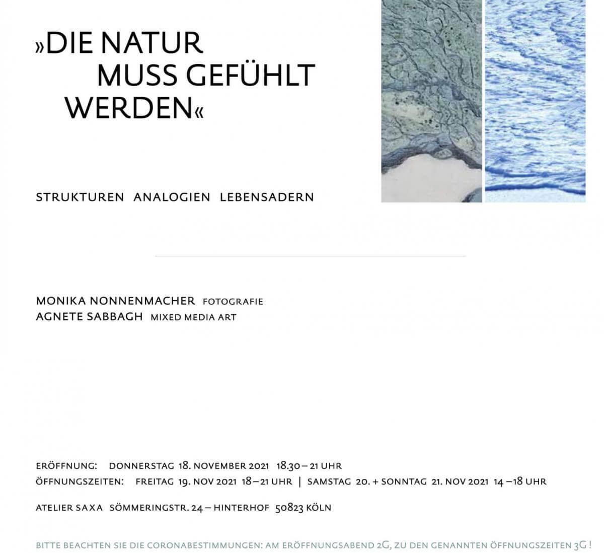 08 Nov AUSSTELLUNG "DIE NATUR MUSS GEFÜHLT WERDEN" FINDET ENDLICH STATT! 28. April-1. Mai 2022!!! Von AgneteSabbagh With 1 Kommentare Strukturen - Analogien - Lebensadern Liebe Freundinnen & Freunde der Kunst, weiterlesen