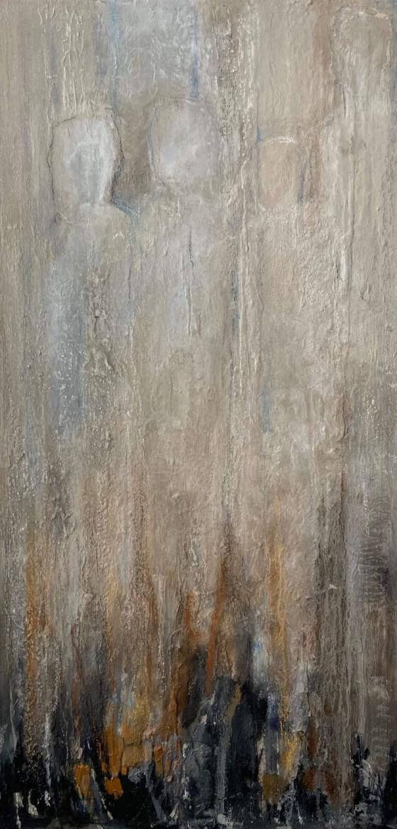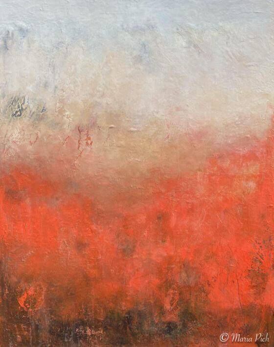 Die abstrakten Bilder sind spontane Arbeiten, ein Spiel mit Struktur und Farbe. Ist ein Bild in meinen Augen abgeschlossen, in sich stimmig, folgen Bilder, die sich an dieses Bild anlehnen, den Prozess aufgreifen; es enstehen im weitesten Sinne Serien. Die abstrakten Bilder fordern viel Kraft. Oft muss der erste Entwurf einer "besseren" Version weichen; es entstehen Schichten, die Spannung aufbauen, das Bild leben lassen.