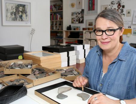 Ulla Philipp arbeitet mit Flusskieseln. Aber ihre Arrangements sind keine vergänglichen Anordnungen in der Landschaft wie die der Land Art-Künstler. Philipp ordnet die Steine auf einem Blatt Papier zu einer Szene und rahmt diese. Ihre Arbeit ist eine Verbeugung vor dem Einfachen. Vor dem Ursprünglichen. Vor dem Alltäglichen.