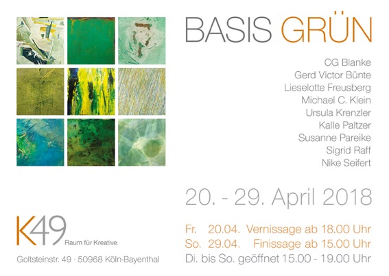 Von Grevy Ausstellung, K49, Gerd Victor Bünte, Ursula Krenzler With 0 KommentareHier ein Veranstaltungstipp: Die Ausstellung "Basis Grün" im K49 in Bayenthal, organsiert von unserem Freund Kalle Paltzer. Das werden wir uns auf jeden Fall anschauen, auch weil mit Gerd Victor Bünte und Ursula Krenzler auch zwei Grevy-Künstler mit dabei sind.