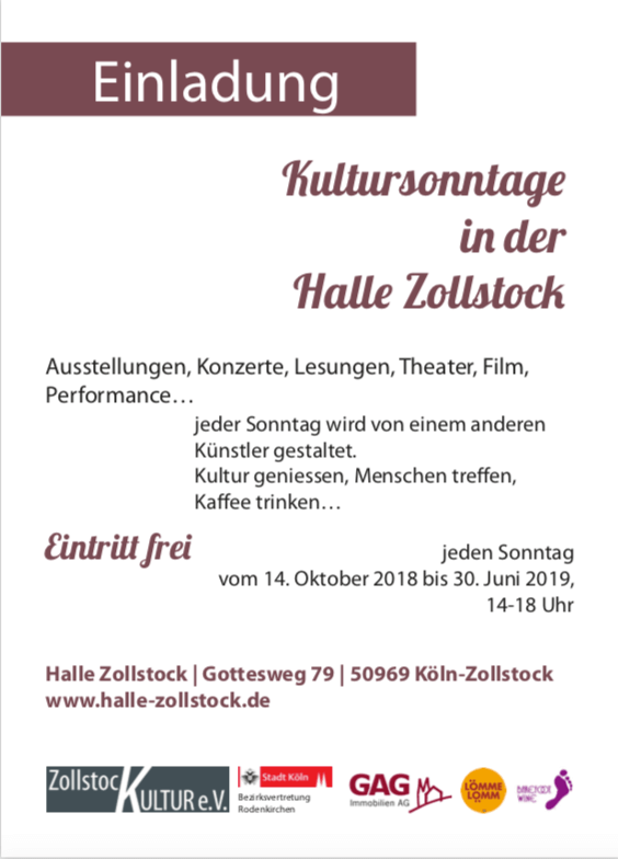 Von Renate Zollstock, Halle Zollstock, Kultursonntage With 0 KommentareJeden Sonntag von 14-18 Uhr (erstmal von Oktober 2018-Juni 2019) bietet der „Kultursonntag“