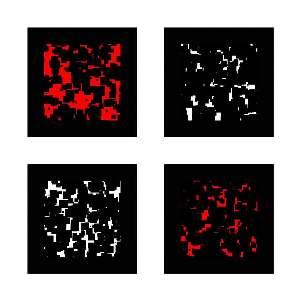 Eine Serie von vier einzelnen Bildern. Jedes Bild hat die Größe 60x60 cm.