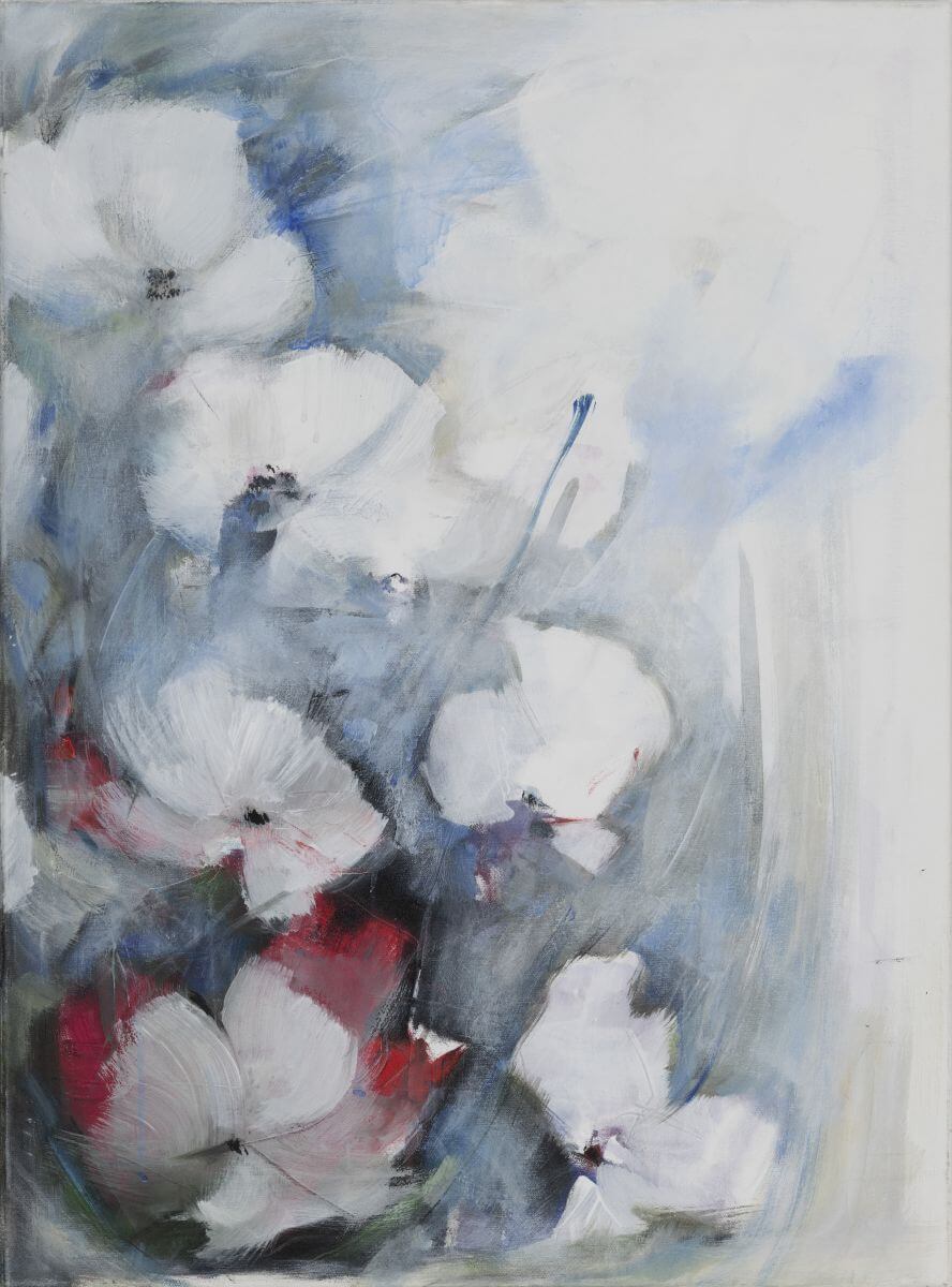 abstrakter Realismus: Blütenblätter lösen sich und treiben im Wind.