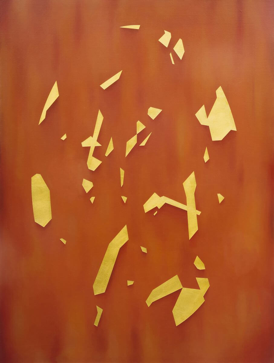 Hochwertige Materialien: 24 Karat Blattgold und Ölfarbe auf Leinen auf einem Holzrahmen.