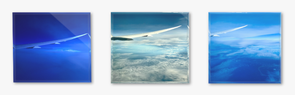 Diese auf 10 Stück limitierte 3'er Edition enstand auf einer langen Reise im April 2021 und zeigt die wunderschönen Farben des Pazifischen Ozeans photographiert aus dem Flugzeug auf dem Weg von Neuseeland nach Amerika.