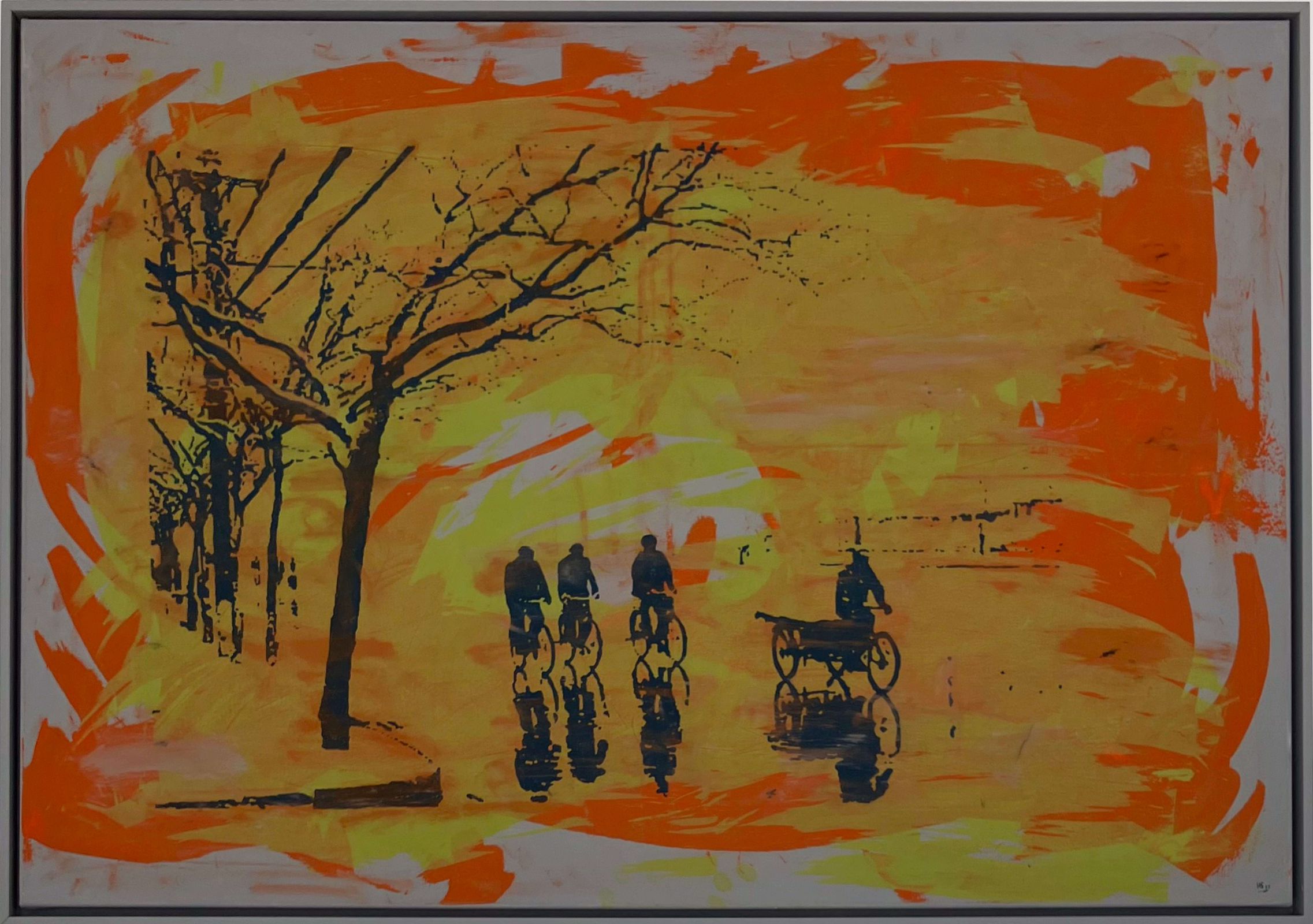 Acrylfarben auf Leinwand, im Schattenfugenrahmen, Motiv nach einem altem gefundenem und digital bearbeitetem Foto