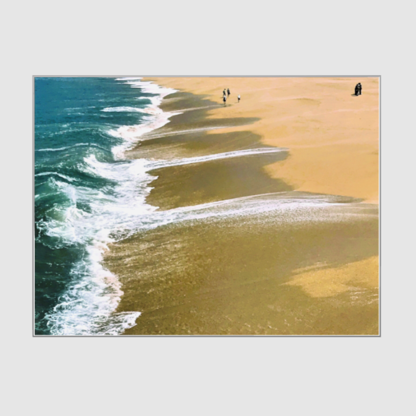 Diese auf 10 Stück limitierte Photoarbeit entstand bei der Fortsetzung einer langen Reise im Frühjahr 2023 und zeigt das Strandleben von Nazare in Portugal, mit dem kommenden und gehenden Wasser der Meeresbrandung, sowie den menschlichen Besuchern.