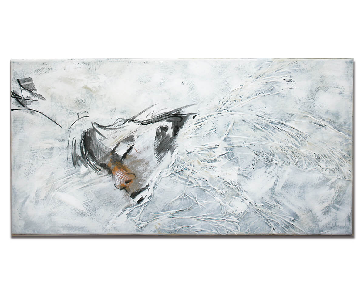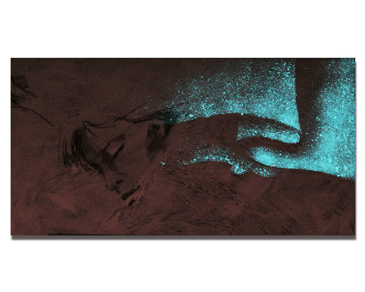 Collage und Acryl auf Leinwand, 80x40 cm, bei Dunkelheit fluoreszierend leuchtend.