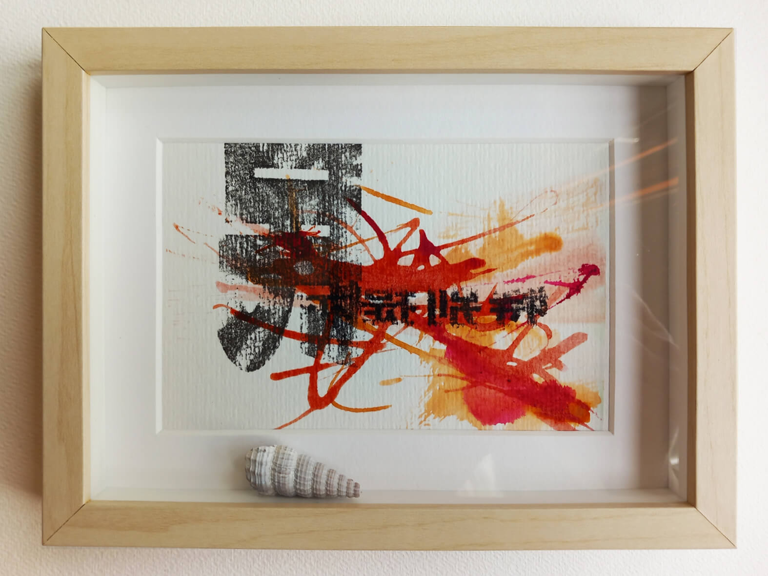 Asiatische Typografie auf Postkarte (10,5 x 15 cm) aus Aquarellpapier, ergänzt durch farbige Tuscheakzente.